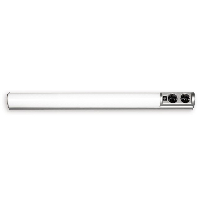 Työpistevalaisin Primo 15W G13 615 mm harmaa + 2-osainen pistorasia + kytkin