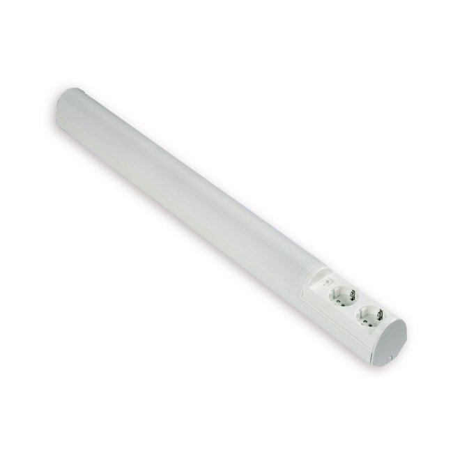 Työpistevalaisin Primo 15W G13 615 mm valkoinen + 2-osainen pistorasia + kytkin