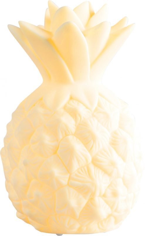 A Little Lovely Companyn ananaksen mallinen, keltainen valaisin antaa kauniin valon ja luo pehmeää tunnelmaa lastenhuoneeseen. Hollantilainen A Little Lovely Company on sisustusyritys, jonka valikoimaan kuuluvat uniikin ilmeen omaavat tuotteet ja ihastuttavat valaisimet. Ananasvalaisin on yhtä hieno niin sytytettynä kuin sammutettuna ja se muodostaa hienon yksityiskohdan sisutuksessa. Valaisin toimii paristoilla, joten voit asettaa sen minne tahansa ja vältyt häiritseviltä johdoilta. Valaisimessa on pieni LED-lamppu ananaksen keskellä. LED-lamppu ei kuumene, joten valaisin ei koskaan lämpene liikaa, mikä on tärkeää käytettäessä lamppua yövalona tai lastenhuoneessa. Saatavana kaksi eri väriä, keltainen ja vaaleanpunainen. Koko: 15 cm Materiaali: PVC, ei sisällä BPA:ta Valaisin toimii 3 x LR44 AA-paristolla, paristot sisältyvät pakkaukseen Lamppu on ympäristöystävällinen