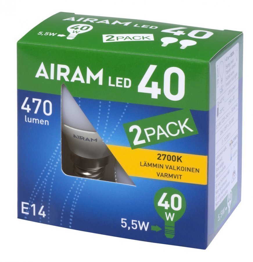 Airam Led 2-Pack 5,5w Mainos E14 2700k 470lm