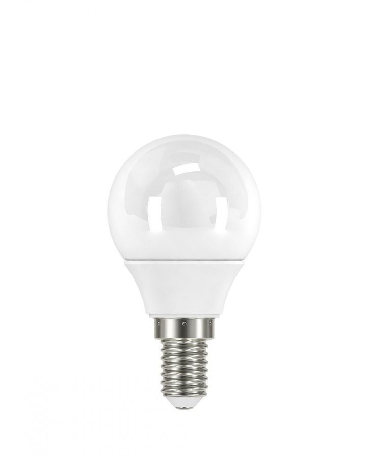 Pienkupuinen (mainos) LED-lamppu 7W E14 470lm, 2700K, 25 000h, energialuokka A+. Ø 45/89mm. Täysi valontuotto heti. Erinomainen valotehokkuus. Ei UV- tai IR-säteilyä.