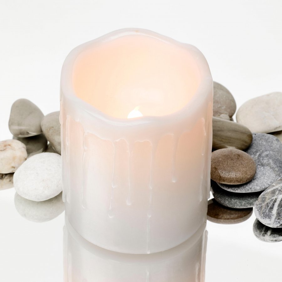 Sisäkäyttöön – LED 1 kpl, keltainen ”elävä liekkinen”, ei vaihdettava, paloikä n. 10 000 h – materiaali valkoinen muovi, aidon vahakynttilän pinta – paristokäyttöinen, paristot 2 kpl LR06 mukana – paristokotelo ja on/pff kytkin pohjassa – korkeus 10cm, halkaisija 8cm