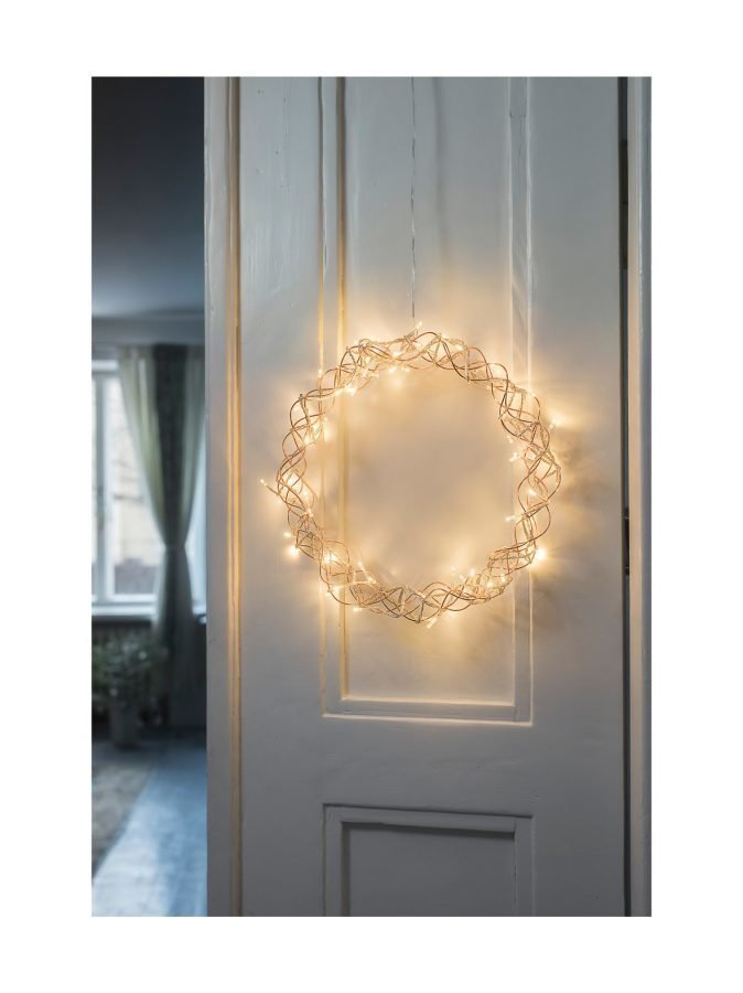 Metallilangasta valmistettu kranssi luo tunnelmallista valoa 60 LED-lampullaan. Vain sisäkäyttöön.