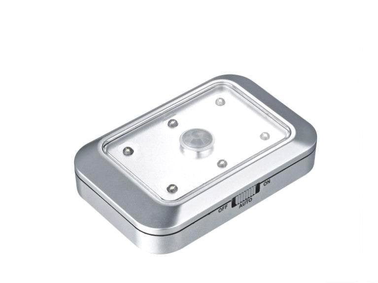 Pienikokoinen ja tehokas paristokäyttöinen LED-valaisin liiketunnistimella. Kätevä yövalona turvaamassa liikkumista ja esim. vaatehuoneessa. Kiinnitys tarralla tai koukkuun. Valonlähde: 6 kirkasta LEDiä. Virtalähde: paristot 3 x AA.