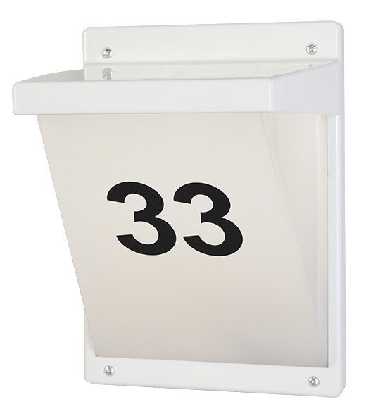 Yleis- ja numerovalaisin ulkotiloihin. Mukana mustat kirjain- ja numerotarrat (A-J / 0-9). •Valkoinen •Kiinteä AC-Led 9W 420lm 3000K 50 000h • mitat: K 285 x S 24 mm • IP65