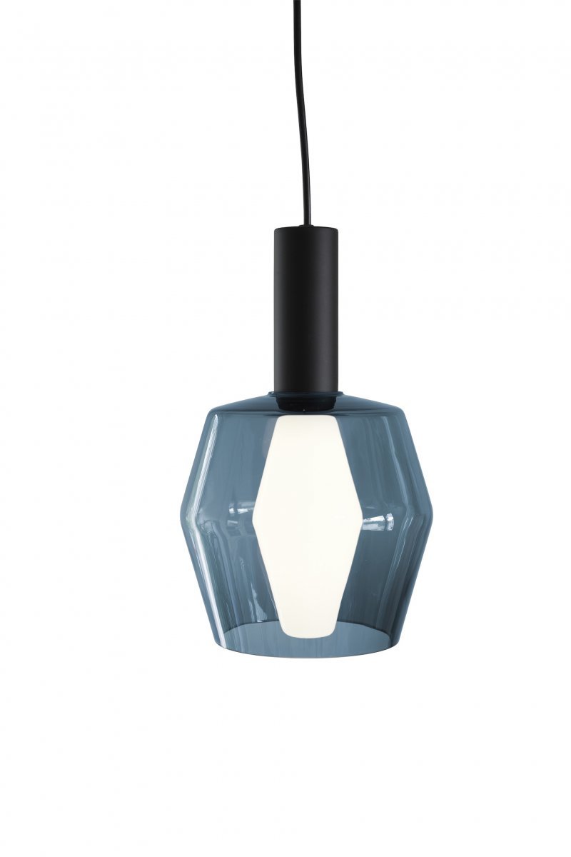 Wirkkalan K2-142 valaisinjohto 3,1m, savunsininen lasikupu, WIR-85 Led-lamppu 8W, E27-kanta, 760lm, 3000k, 15 000h, himmennettävä