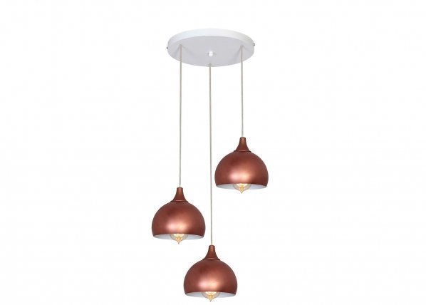 Kolmiosainen metallinen kattovalaisin – kuparinsävyisten kupujen sisus on valkoinen – valaisimeen sopivat lamput… Lue lisää »