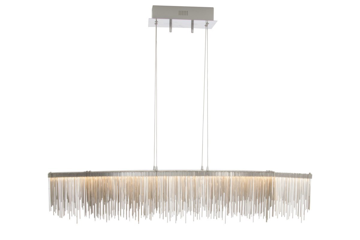 Kromin värinen Cadena LED kattovalaisin on näyttävä ja ylellinen, metallin ja alumiinin yhdistelmä. Korkeus on säädettävissä ja valaisin on himmennettävissä seinähimmentimellä. Asennusta helpottavat kattokoukkukiinnitys ja pistoke.Korkeus: 23cm Leveys: 105cm Syvyys:15,5cm Lampunkanta: Led Yksikkö 25w Valovirta: 1500 lm Värilämpötila: 3000 kElinikä: 50 000 h Energialuokka: AMateriaali: Metalli, Alumiini Väri: Kromi / Alumiini
