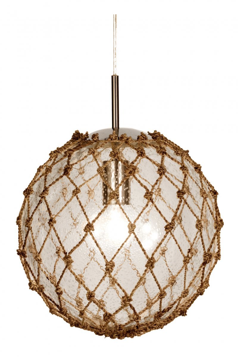 Suurikokoinen rannikkotyyliä henkivä kattovalaisin modernilla otteella: eläväpintainen, kirkasta lasia oleva 40 cm varjostinosa viimeistellään verkkomaiseksi punotulla paperinarulla. Max 60 W E27 lamppu ei sisälly mukaan vaan valittavissa mieltymyksen mukaan. Korkeus säädettävissä 60-160 cm ja kupuosan korkeus 40 cm. Asennusta helpottaa kätevä kattokoukkukiinnitys ja pistoke. •Korkeus: 400.0 mm •Halkaisija: 400.0 mm •Lamppukanta: E27 max 60W •Ripustuskaapelin pituus: 1200 mm