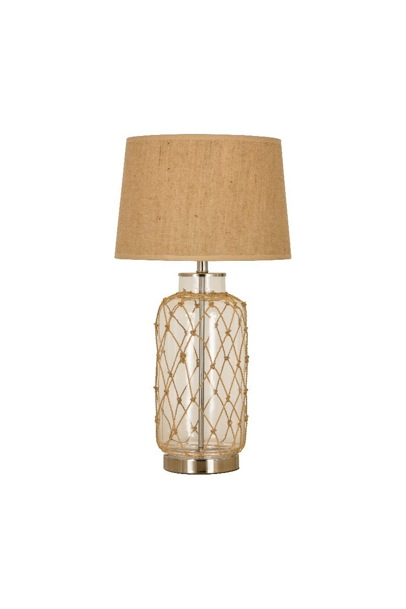 Aneta Marine pöytävalaisin on rannikkotyylinen valaisin modernilla otteella: eläväpintainen, kirkasta lasia oleva jalkaosa viimeistellään verkkomaiseksi punotulla, luonnonvärisellä narulla ja sävy sävyyn luonnonvärinen varjostin. Max 60 W E27 lamppu ei sisälly mukaan vaan valittavissa mieltymyksen mukaan. Korkeus 55 cm ja varjostinosan halkaisija 30 cm. Katkaisin 190 cm johdossa.