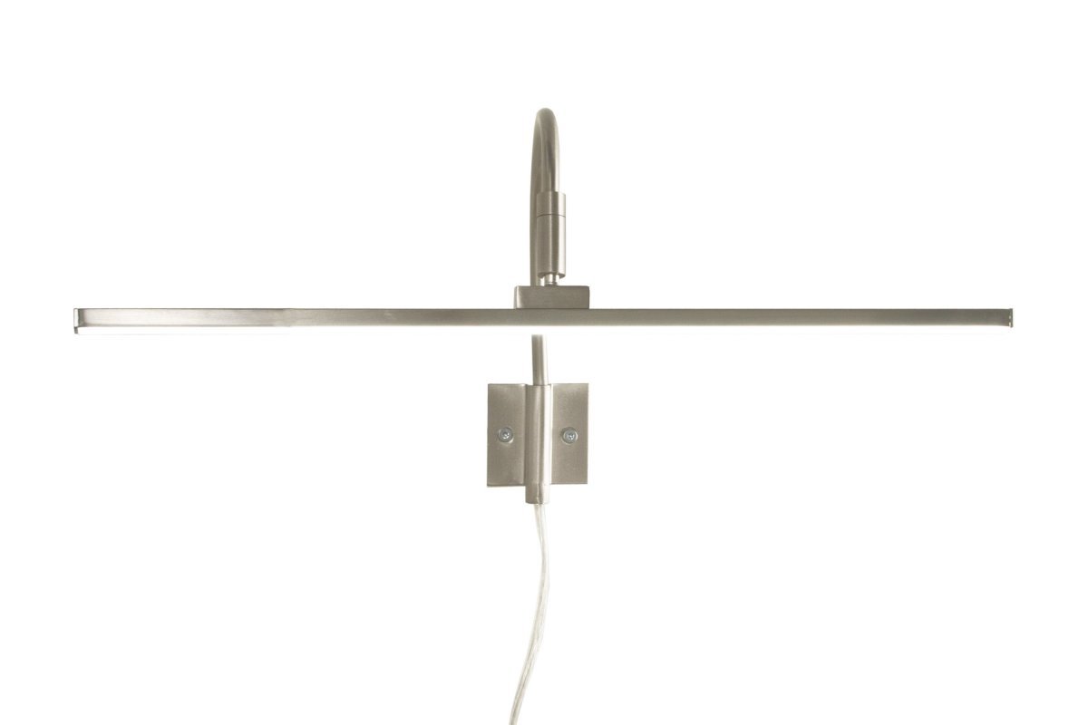 Minimalistinen 40 cm LED tauluvalo värinä himmeäpintaista terästä. Lämmin valkoinen valo 3000 K. •Sisältää 270 cm johdon ja siinä katkaisijan 1 m päässä valaisimesta. Valaisinta voi säätää hieman oikeaan kulmaan tauluun nähden. •Korkeus: 180.0 mm •Syvyys: 160.0 mm •Leveys: 405.0 mm •Teho: 5 W •Jännite: 12 V •Ei himmennettävissä