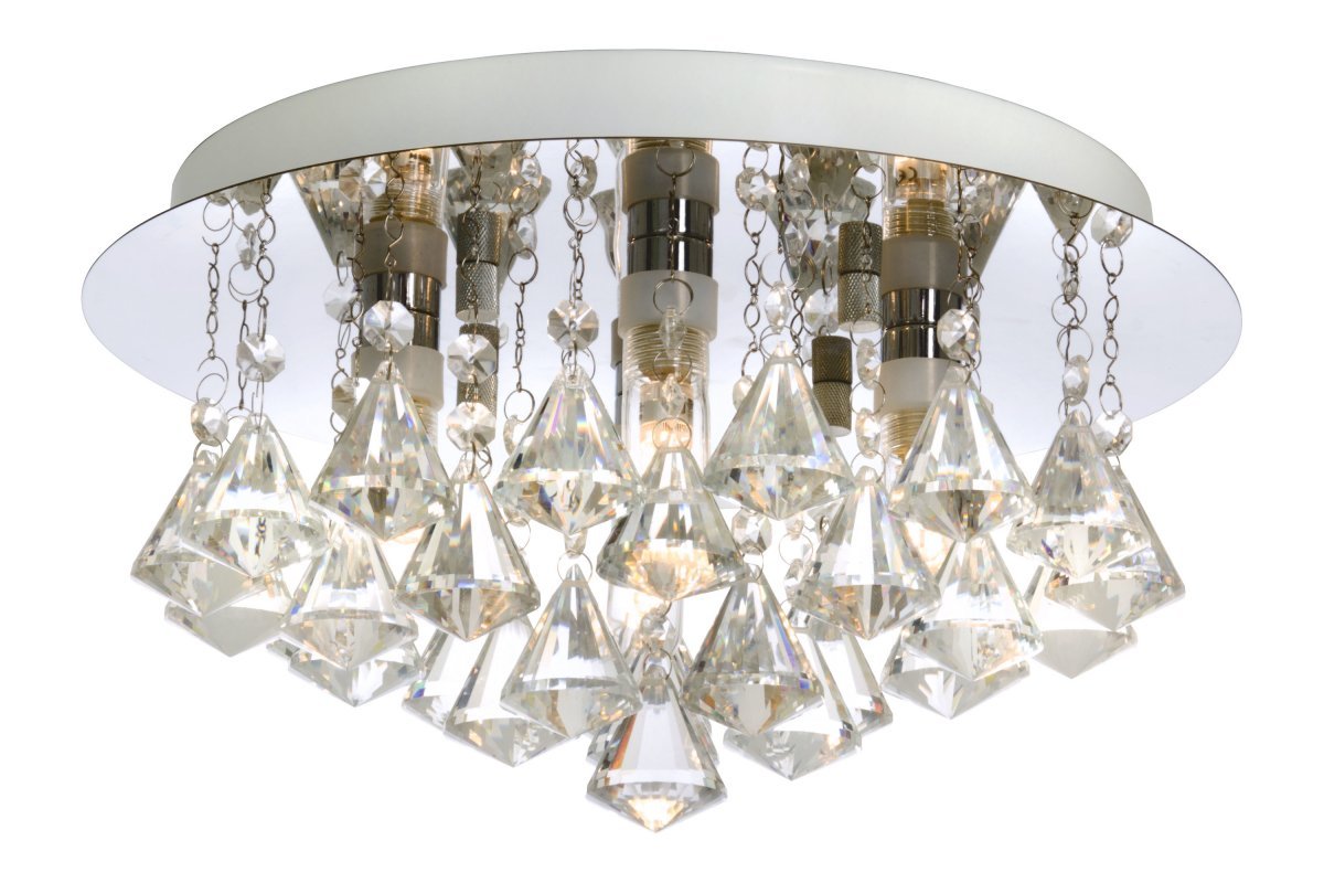 Näyttävässä IP44 Prisca kylpyhuonevalaisimessa on taidokkaasti hiotut, aidot K5 kristallit. Valo heijastuu kristallien läpi upeasti luoden yleellistä tunnelmaa.Korkeus: 19cmHalkaisija: 36 cmLampunkanta: 4 x Max 33 W G9Energialuokka: A ++ – E Materiaali : Metalli / lasi Väri: Kromi / Kirkas