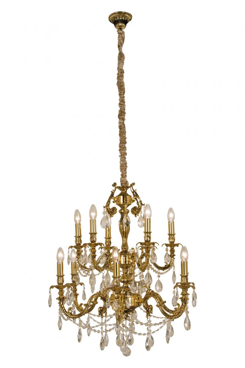 Klassinen, 12 valopistettä sisältävä Aneta Versailles kattokruunu on antiikkikäsitellyn kullan väristä, valettua metallia. Taidokkaasti hiotut K9-kristalliprismat hehkuvat kauneimmin, jos valaisimessa käytetään kirkkaita polttimoita. Kattokruunun viimeistelee ripustusketjun peittävä beigenvärinen samettikangas. Himmennettävät lamput valitsemalla voit säädellä valon määrää. Asennusta helpottaa kätevä kattokoukkukiinnitys ilman pistoketta. Valaisin kiinnitetään sokeripalaan, mutta valaisimeen on helppo lisätä tarvittaessa myös pistoke. •Korkeus: 810.0 mm •Halkaisija: 750 mm •Lamppukanta: E14 12 x max 40W •Ripustuskaapelin pituus: 2300 mm