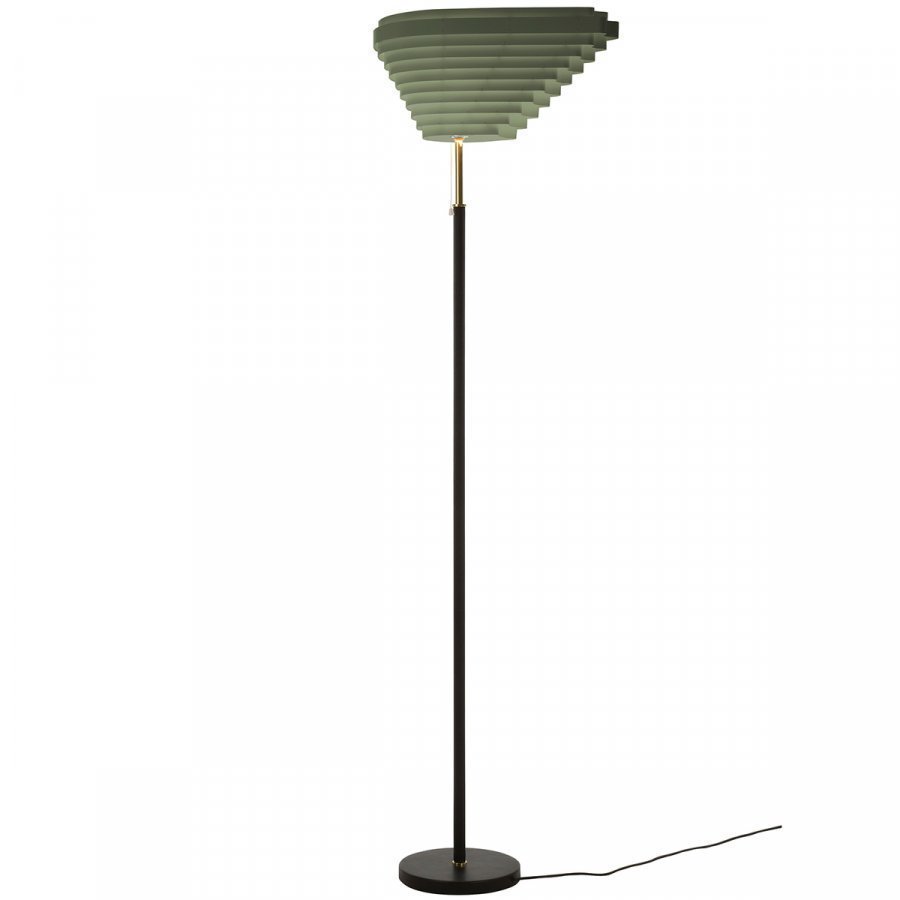Artekin A805-valaisimen oliivinvihreä erikoisjulkaisu on suunniteltu Helsingissä vuonna 2018 auenneeseen St. George -designhotelliin. Sen varjostimen viehättävä värisävy on otettu Alvar Aallon studiolta löytyneestä vanhasta lattiavalaisimesta. Erikoismalli on myynnissä Artekin lisäksi vain Finnish Design Shopissa. Artekin A805-lattiavalaisin tunnetaan myös nimellä Enkelinsiipi, sillä sen veistoksellinen, kerrostettu varjostin muistuttaa epäsymmetriseltä muodoltaan siipeä. Enkelinsiipi on kauniin hallittu kokonaisuus eri värejä ja materiaaleja: valaisimen rungossa kohtaavat kiillotettu messinki, musta nahka ja käsinnidotuista metallilevyistä valmistettu varjostin. A805-valaisin levittää ympärilleen pehmeää valoa, jonka kohdistusta ja kirkkautta voi säätää mieleisekseen. Alvar Aalto suunnitteli A805-valaisimen vuonna 1954 Helsingin Kansaneläkelaitokselle, ja sen ajaton eleganssi löytää helposti paikkansa myös 2000-luvun kodeista ja julkisista tiloista.