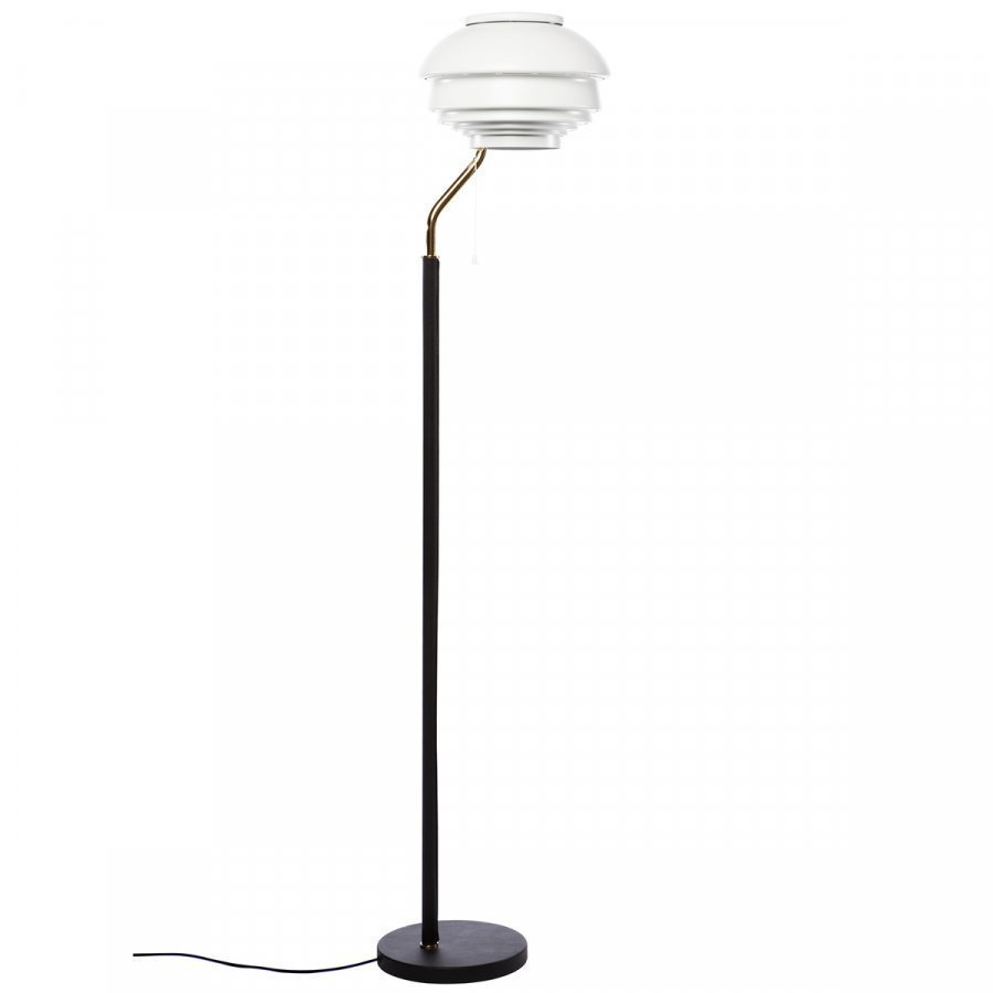 Artekin A808-lattiavalaisin on hallittu kokonaisuus eri värejä ja materiaaleja: valaisimen rungossa kohtaavat kiillotettu messinki ja musta nahka, ja sen näyttävä messinkivarjostin koostuu kerroksittain asetetuista metallileveyistä, jotka hajottavat valon tasaisesti. Alvar Aalto suunnitteli A808-valaisimen vuonna 1955 Helsingin Kansaneläkelaitokselle, ja sen ajaton eleganssi löytää helposti paikkansa myös 2000-luvun kodeista ja julkisista tiloista.