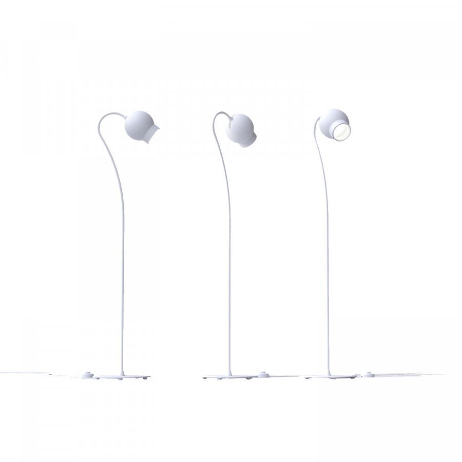 Ogle lattiavalaisin 15 cm merkiltä atelj Lyktan, suunnittelija Form Us With Love. Lattiavalaisimen muotoonruiskutettu varjostin on valkoista polykarbonaattia ja heijastin puristettua alumiinia. Lattiavalaisimessa on liitäntäjohto 2×0,75 mm ja pistoke ja virtakatkaisin.