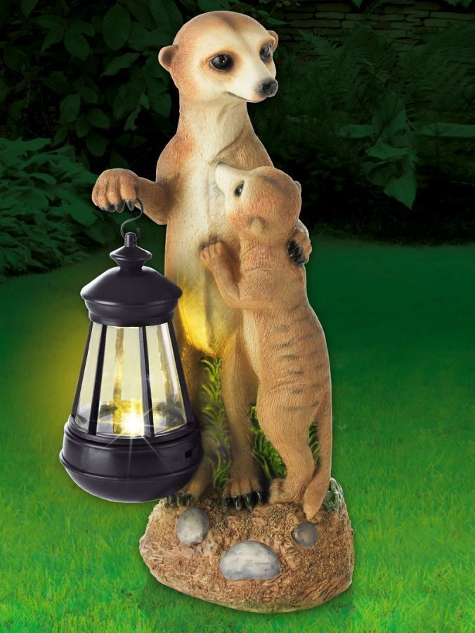 Aurinkokennovalaisin, -maahinen-. Äiti-maahinen ja lapsi. Äiti kantaa kädessään lyhtyä. Käsinmaalattu maahisperhe sopii hyvin puutarhaan tai terassille koristeeksi sekä valaisemaan pimeän tullen. Päivisin valaisimen aurinkokenno varastoi aurinkoenergiaa ja valaisin syttyy automaattisesti pimeän tullen ja levittää ympärilleen lämpimänvalkoista valoaan jopa 8 tunnin ajan. Koko n. 30x14x11 cm.