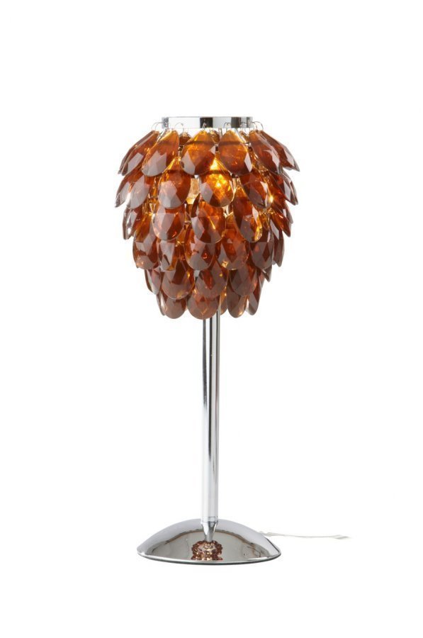 Prismakoristeinen valaisin luo ylellistä tunnelmaa kotiin. Materiaali: Metallia ja akryylimuovia. Koko: Korkeus 40 cm, ø 15 cm. Kuvaus: Pöytävalaisin krominväristä metallia,prismat akryylimuovia. Läpikuultava johto 2 m. Kanta/lamppu: 1 x E14, enintään 40 W:n hehkulamppu tai enintään 7 W:n energiansäästölamppu. Vinkki: Käytä halogeenilamppua, joka luo kirkkaan valon ja saa prismat luomaan hienot tehosteet seinille ja kattoon.