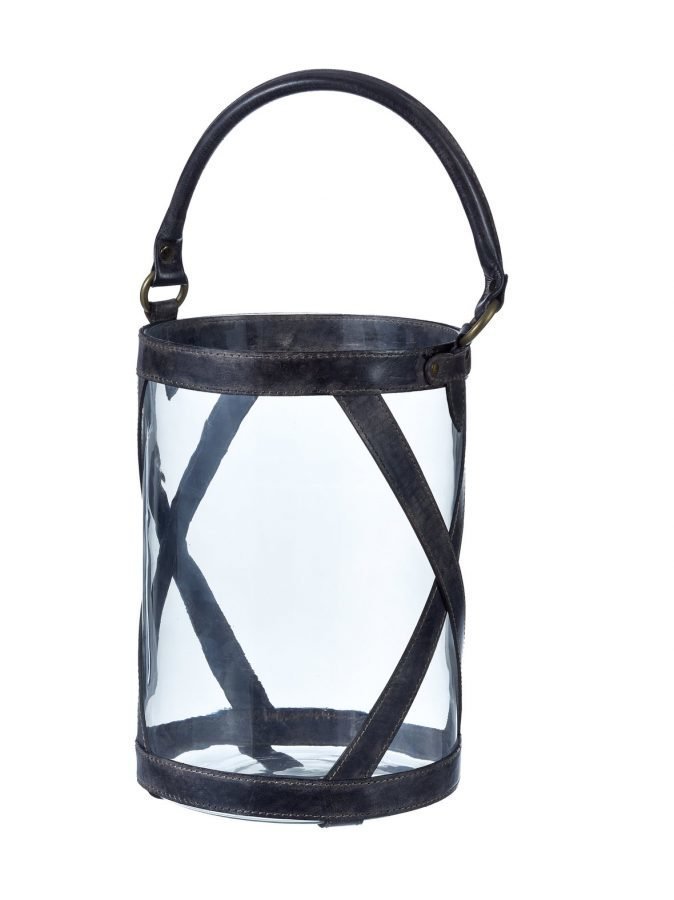 Sylinterinmallisessa lasilyhdyssä on nahkainen kehikko sekä metallirenkaista roikkuva ripustuslenkki. Halkaisija on 21 cm ja korkeus 30 cm.Materiaali on lasia.