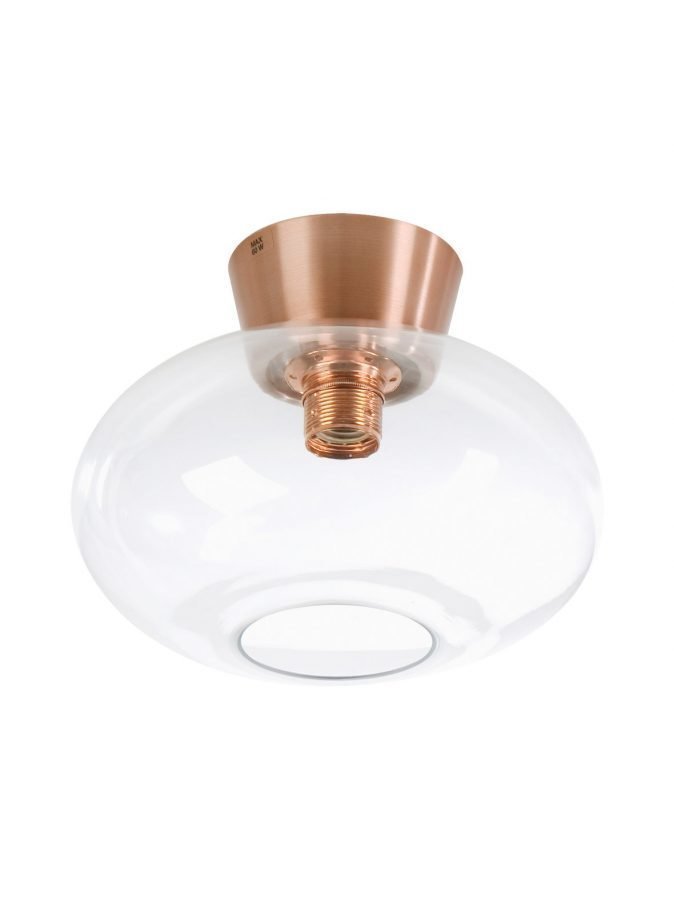 Pyöreälinjainen plafondi on lakattua metallia, lasikupu on kirkas. Valaisimeen sopii E27-kantainen lamppu, joka ei sisälly pakkaukseen. Teho on 60 W ja jännite 230 V. Halkaisija on 27 cm ja korkeus 21 cm.P2236-13-18