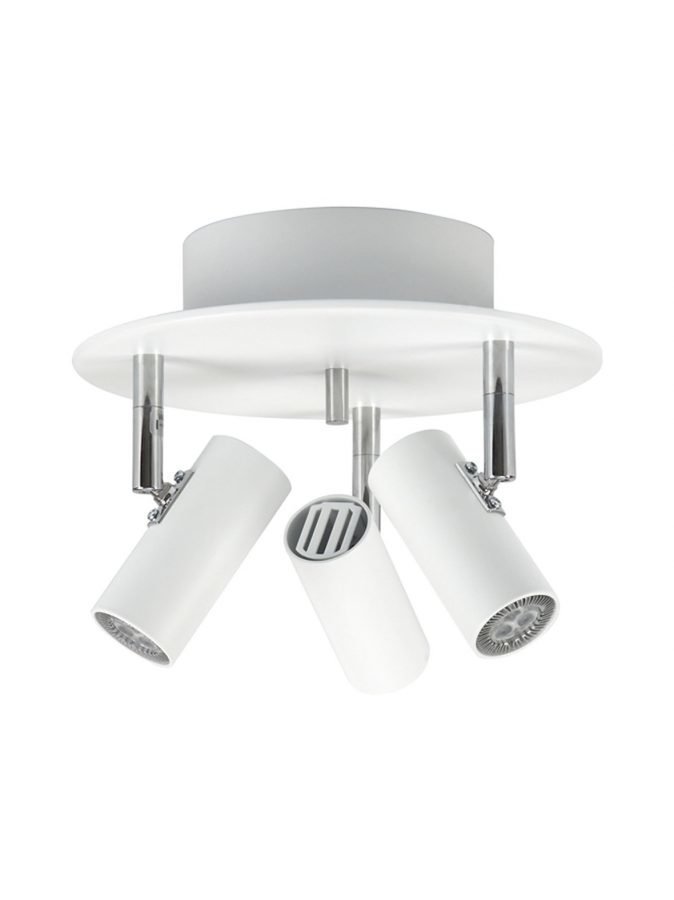 Muotokieleltään modernin selkeä kolmespottinen LED-valaisin kiinnitetään kattokoukkun. Pyöreä metallinen valaisin voidaan kytkeä transistorihimmentimeen, joka säätää vaihejännitten takareunaa. Pakkaus sisältää valaisinpistotulpan sekä valonlähteet (MR11 LED, 3 x 3 W). Halkaisija on 22,5 cm ja korkeus 17,5 cm.