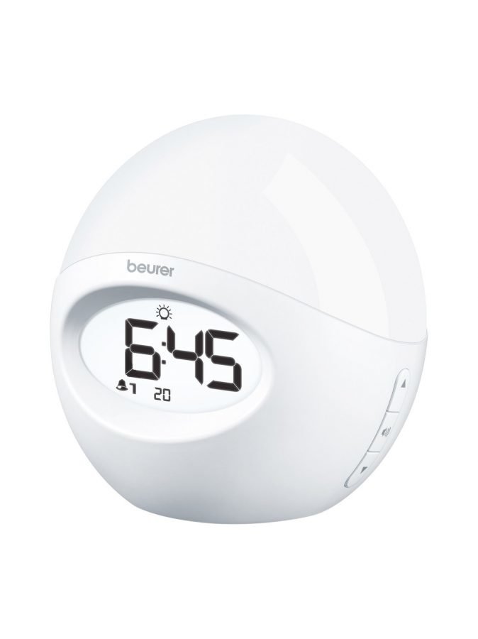Pyöreälinjainen sarastusvalo lisää valotehoaan kuin aito auringonnousu. Voit valita nopeamman, 15 minuutissa tapahtuvan kirkastumisen tai puolen tunnin herätyksen. Valon lisääntymisen jälkeen heräät lempeästi radioon tai hälytysääneen. Sarastusvaloon voi asettaa kaksi herätysaikaa, torkustustoiminnon keston voi valita 5−60 minuutin väliltä. Radiossa on kymmenen kanava-asetuksen muisti. Heräämisen lisäksi voit nukahtaa ajastettavaan radioon. Sisältää AUX-kaapelin, jolla valaisimen voi yhdistää MP3-soittimeen. Valoteho on säädettävissä, samoin voit valita väriä vaihtavan tunnelmavalon. Valaisinta voi käyttää myös yövalona. Valoteho 15 cm:n päästä on noin 15 Lux.