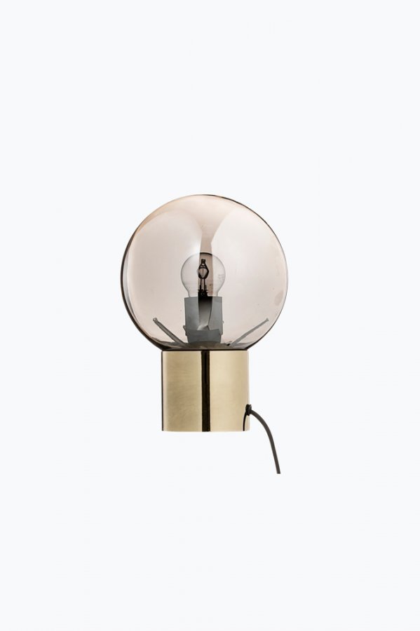 Pöytävalaisin kullanväristä metallia, lasikupu. Korkeus 25 cm, halkaisija 18 cm.