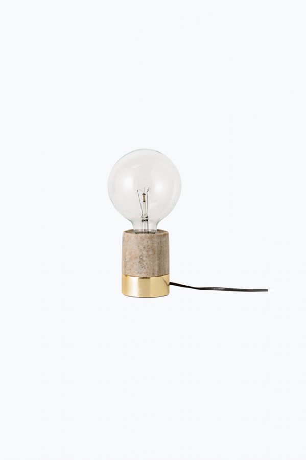 Lampunjalka beigeä marmoria ja kullanväristä materiaalia. Lamppu ei ole mukana. Halkaisija 8 cm, korkeus 11 cm. 40 W.