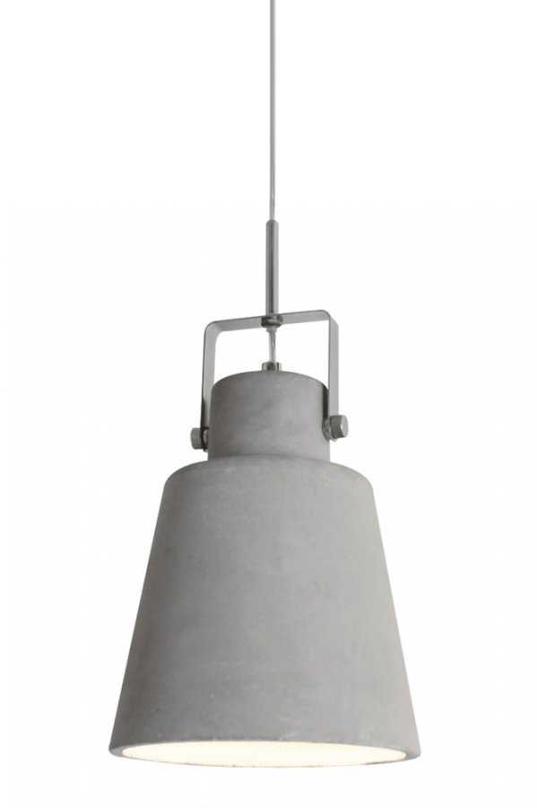 Corbie-kattovalaisin betonia. Läpikuultava johto 1,2 m. Krominvärinen kattokuppi. Iso E27-kanta. Enintään 53 W. Korkeus 38 cm, halkaisija 20 cm.