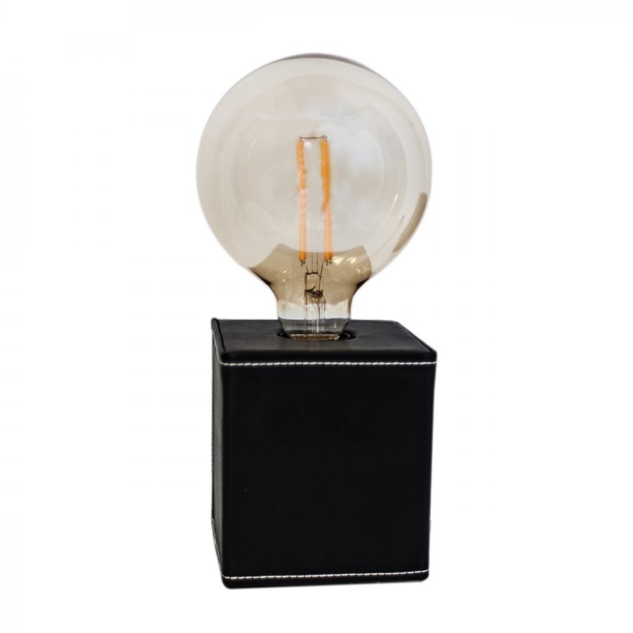 Dark on pieni pöytälamppu, jossa on mustaa nahkaa valkoisilla saumoilla. Saatavilla kahdessa koossa.