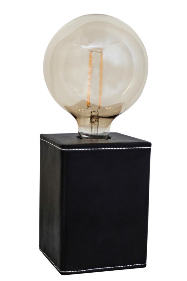 Dark-lampunjalka mustaa nahkajäljitelmää. Korkeus 15 cm, 10×10 cm. Musta johto. E27-lampunpidike, enintään 40 W. Lamppu ei mukana. Design By Rydéns.