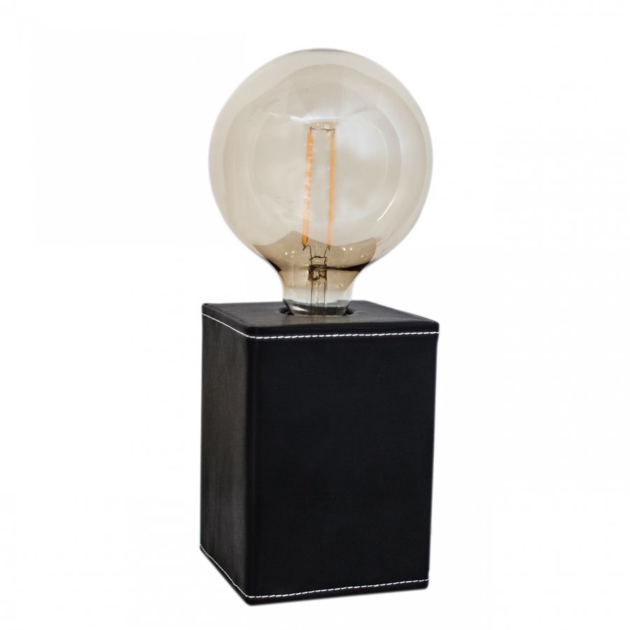Dark on pieni pöytälamppu, jossa on mustaa nahkaa valkoisilla saumoilla. Saatavilla kahdessa koossa.