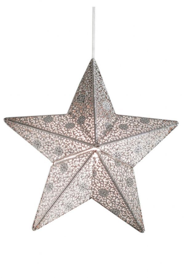 Etoile-ikkunavalaisin metallia. Korkeus 30 cm. Syvyys 10 cm. Pieni lampunkanta E14. Enintään 25 W(lamppu ei ole mukana). 3,5-metrinen läpikuultava johto, jossa katkaisin.