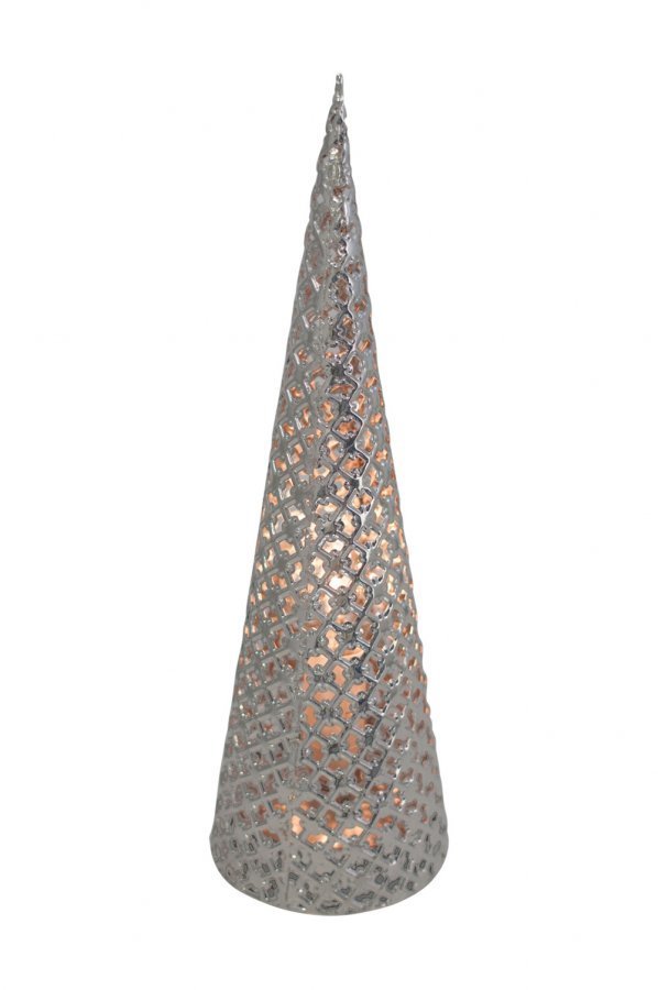 Metallinen pöytävalaisin. Korkeus 32 cm, halkaisija 10 cm. Lampunkanta E14, enintään 25 W. Lamppu ei mukana.