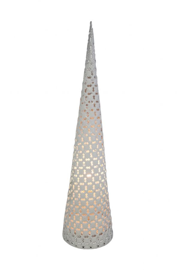 Metallinen pöytävalaisin. Korkeus 40 cm, halkaisija 10 cm. Lampunkanta E14, enintään 25 W. Lamppu ei mukana.