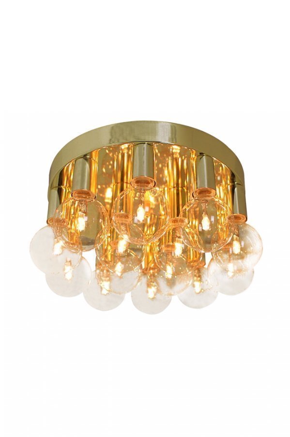 Plafondi metallia. Lamput E27, iso kanta, 14 kpl. Enintään 30 W (lamput eivät mukana). Korkeus: 12 cm. ø: 40 cm. Koukkukiinnitys. Suunnittelija: Katarina Dahl.