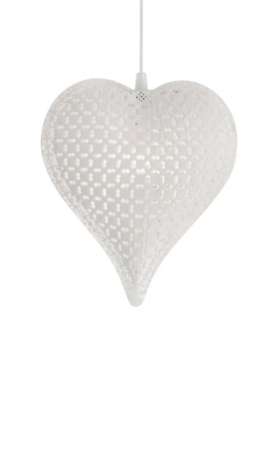 Sydämenmuotoinen ikkunavalaisin valkoista metallia. Korkeus 23 cm. Läpikuultava johto, jossa valonkatkaisin, pituus 3,5 m. Lampunkanta E14, enintään 40 W. Lamppu ei sisälly toimitukseen.