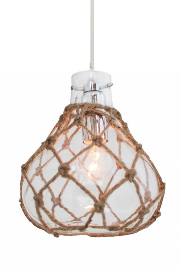 Ikkunavalaisin kirkasta lasia ja juuttinarua. Krominväriset detaljit. K 19,5 cm, ø 17 cm. Pieni lampunkanta E14. Enintään 40 W (lamppu ei mukana).