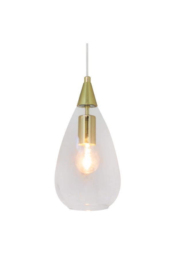 Kattovalaisin kirkasta lasia, lampunpidike metallia. E27, iso kanta. Enintään 60 W (lamppu ei mukana). Korkeus: 30 cm. ø: 24 cm. 1,2 metrin pituinen läpikuultava johto. Kattokupu metallia. Koukkukiinnitys.