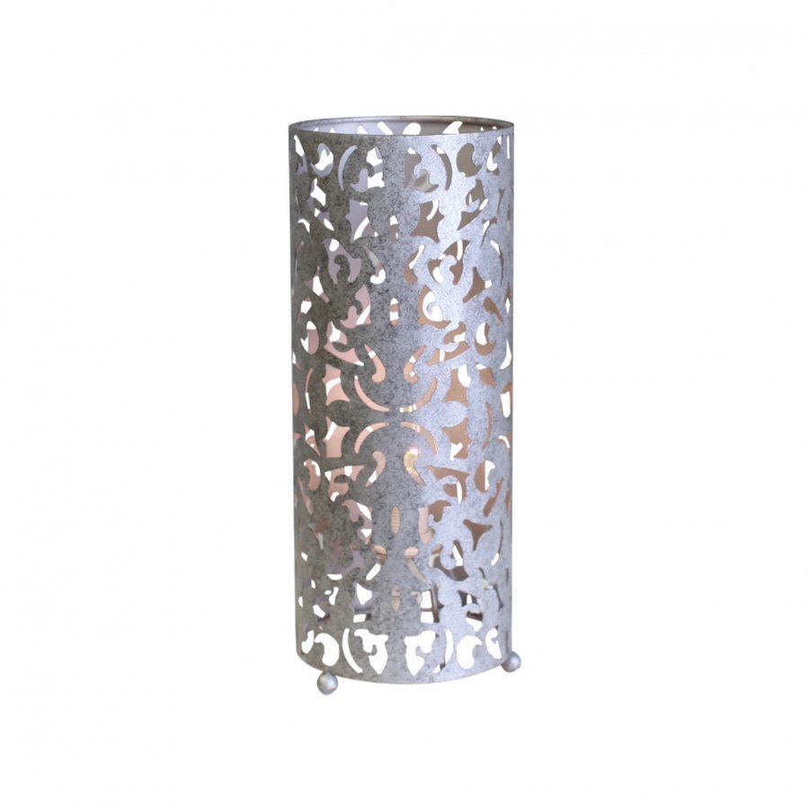 Sylinterin muotoinen pöytävalaisin Modelli By Rydens -tuotemerkiltä. Valaisin on metallia ja valo siivilöityy leikatuista kuvioista kauniisti huoneen seinille leikatuista kuvioista. Tuote saatavissa vain verkkokaupasta.