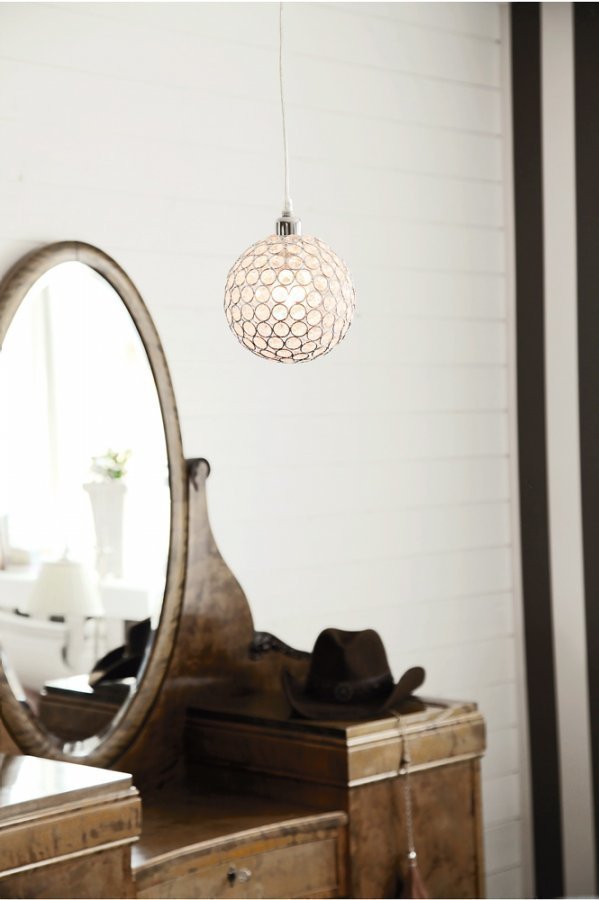 Sita-ikkunavalaisin, jossa krominväristä metallia ja kirkkaat akryyliprismat. Ø 15 cm. Läpikuultava johto 3,5 m, johdossa katkaisin. E14. 40 W.