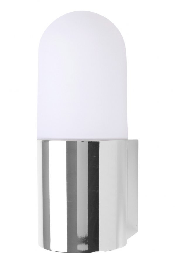Skina-seinävalaisin metallia ja valkoista opaalilasia. K: 21 cm, ø: 11 cm, S: 8 cm. E27, iso lampunkanta. Enintään 40 W (lamppu ei ole mukana). Sopii käytettäväksi kylpyhuoneessa, IP44. Kiinteä asennus. Design: Jon Eliasson.