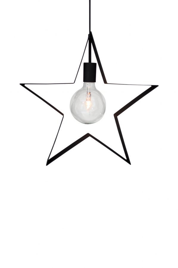 Tähdenmuotoinen ikkunavalaisin. Mitat 45 x 42 cm. Lampunkanta E27. Musta johto, jossa valonkatkaisin, pituus 3,5 m. 2 W:n LED-lamppu, 95 mm. Lamppu ei sisälly toimitukseen. Suunnittelija Erika Lövkvist.