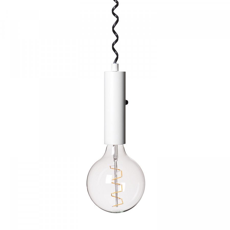Push-kattovalaisin Co Bankerydilta. Upea teollisuustyylinen valaisin, jossa PVC-johto helpottaa valaisimen korkeuden säätöä. Valkoinen kiiltävä pinta tekee valaisimesta upean katseenvangitsijan esimerkiksi ruokapöydän yläpuolelle.