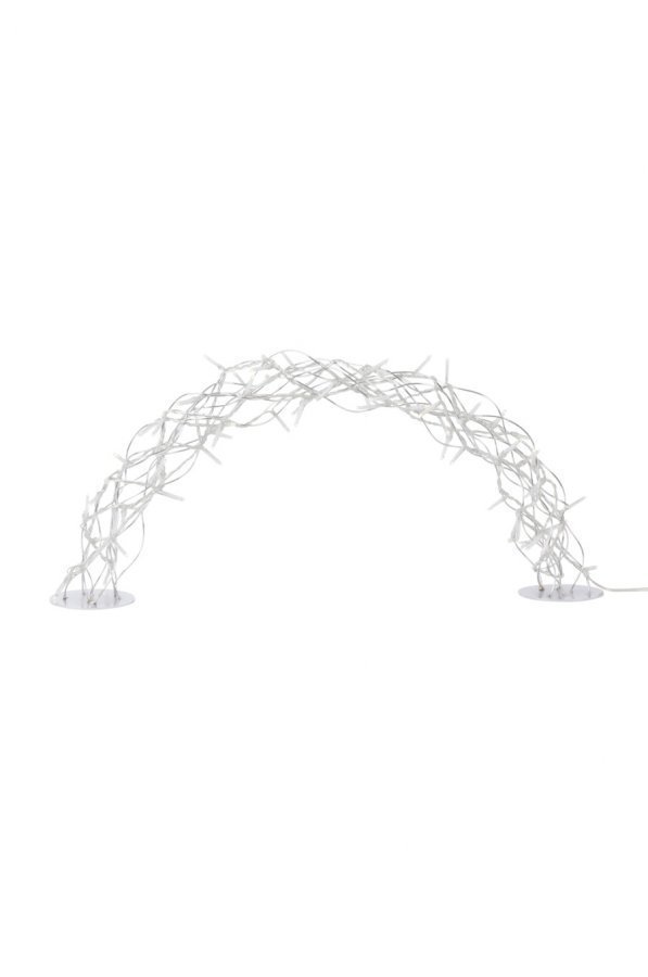 Valokaari valaisee kauniisti talvipimeällä. Materiaali: Muovia. Koko: Leveys 45 cm, korkeus 25,5 cm, syvyys 8 cm. Kuvaus: Valokaari, jossa hopeanväriset muovijohdot. 60 LED-lamppua (ei voi vaihtaa). Sisäkäyttöön. Vinkki: Kutsu ystäviä ja sukulaisia adventtisunnuntain aterialle. Saat ehkä myös apua jouluvalmisteluihin.