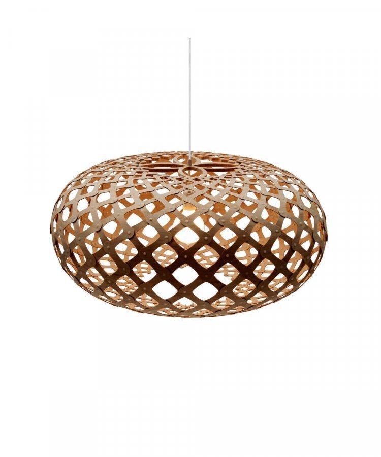 Design: David Trubridge for David Trubridge. Konsepti: Kina on jännittävä valaisinvalikoima David Trubridgeltä. Valaisin toimitetaan kokoamattomana, jotta sen ympäristövaikutukset voidaan minimoida. Valmistusprosessin aikana kaikki valinnat materiaaleista pakkaukseen valitaan ympäristövastuun huomioivalla tavalla. Ripustettavan Kina -valaisimen inspiraationlähteenä toimii Uuden Seelannin alkuperäisväestö: Maorit kutsuvat merisiiliä nimellä ”Kina”. Merisiili kätkee kauniin rakenteen piikkiensä alle. David Trubridgelle kestävyys itsessään toimii ylimääräisenä inspiraationlähteenä sekä muotoilussa että tuotannossa. Usein hänen tuotteensa ovatkin luonnon inspiroimia. Älä huolestu siitä, että joudut kokoamaan valaisimen itse. Täällä meillä Valaisinmestarilla olemme koonneet suuren määrän valaisimia ja voimme vakuuttaa, että se ei ole lainkaan vaikeaa. Ohjeita rauhallisesti seuraamalla kaikki sujuu hyvin. Ota kuppi kahvia, lue kokoamisohjeet ja iske kiinni. Aurinkoisena kesäpäivänä voit vaihtaa kahvikupin lasilliseen kylmää valkoviiniä ja koota valaisimen lämpimällä terassilla. Kina -riippuvalaisin on saatavilla seuraavissa väreissä: luonnonbambu, lime, oranssi, keltainen, aqua, punainen, vaaleanpunainen, valkoinen sekä musta ja valkoinen -versiot joissa molemmat puolet saman värisiä. Myös useita eri kokoja on saatavilla.