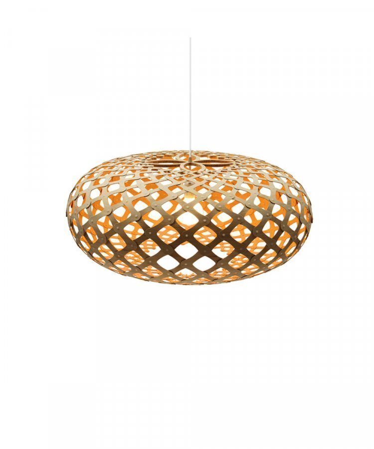 Design: David Trubridge for David Trubridge. Konsepti: Kina on jännittävä valaisinvalikoima David Trubridgeltä. Valaisin toimitetaan kokoamattomana, jotta sen ympäristövaikutukset voidaan minimoida. Valmistusprosessin aikana kaikki valinnat materiaaleista pakkaukseen valitaan ympäristövastuun huomioivalla tavalla. Ripustettavan Kina -valaisimen inspiraationlähteenä toimii Uuden Seelannin alkuperäisväestö: Maorit kutsuvat merisiiliä nimellä ”Kina”. Merisiili kätkee kauniin rakenteen piikkiensä alle. David Trubridgelle kestävyys itsessään toimii ylimääräisenä inspiraationlähteenä sekä muotoilussa että tuotannossa. Usein hänen tuotteensa ovatkin luonnon inspiroimia. Älä huolestu siitä, että joudut kokoamaan valaisimen itse. Täällä meillä Valaisinmestarilla olemme koonneet suuren määrän valaisimia ja voimme vakuuttaa, että se ei ole lainkaan vaikeaa. Ohjeita rauhallisesti seuraamalla kaikki sujuu hyvin. Ota kuppi kahvia, lue kokoamisohjeet ja iske kiinni. Aurinkoisena kesäpäivänä voit vaihtaa kahvikupin lasilliseen kylmää valkoviiniä ja koota valaisimen lämpimällä terassilla. Kina -riippuvalaisin on saatavilla seuraavissa väreissä: luonnonbambu, lime, oranssi, keltainen, aqua, punainen, vaaleanpunainen, valkoinen sekä musta ja valkoinen -versiot joissa molemmat puolet saman värisiä. Myös useita eri kokoja on saatavilla.