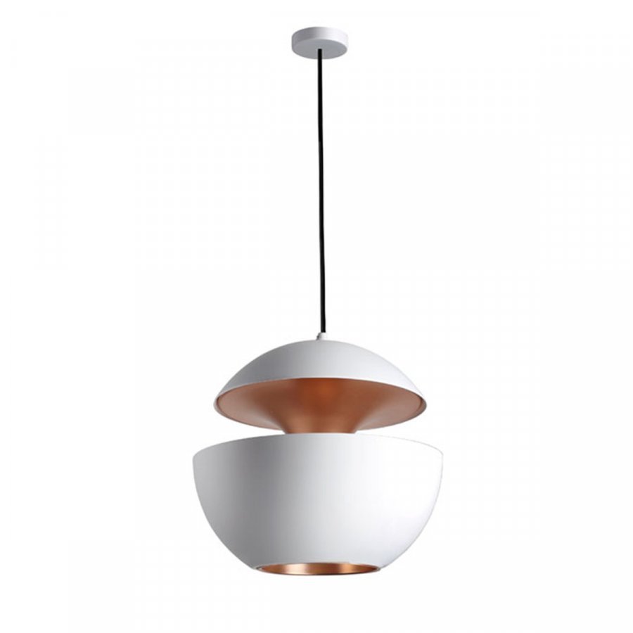 Here Comes The Sun 450 -riippuvalaisin on Bertrand Balas’n luoma ranskalaisen valaisinmuotoilun klassikko, jonka on julkaissut uudelleen DCW éditions. Ulkopinnalta valkoiseksi ja sisäpinnalta kuparinhohtoiseksi maalatun HCS 450 -valaisimen halkaisija on 45 cm, ja näyttävä valaisin sopiikin hyvin myös avariin tilohin. Bertrand Balas tahtoi nimetä valaisimensa The Beatles -yhtyeen laulun mukaan jo sen ilmestyessä vuonna 1970, muttei uskonut saavansa siihen lupaa, joten valaisin julkaistiin Here Comes The Sun -nimellä vasta myöhemmin. HCS-kattovalaisimen tärkein innoittaja on nimensä mukaisesti aurinko, ja sen pyöreälinjainen muotokieli mukaileekin taivaankannen vaiheita: valaisimessa voi nähdä auringonnousun kajastuksen, laskevan auringon loimotuksen tai nousevan kuun himmeän hehkun, joka siivilöityy lempeästi sekä valaisimen kylkeä kiertävästä avonaisesta osasta sekä varjostimen alaosassa sijaitsevasta aukosta. Here Comes The Sun -valaisimia on saatavilla eri väri- ja kokovaihtoehdoissa, joiden joukosta on helppo valita rakastettava ja persoonallinen valontuoja kaiken näköisiin sisustuksiin ja kaiken kokoisiin tiloihin.