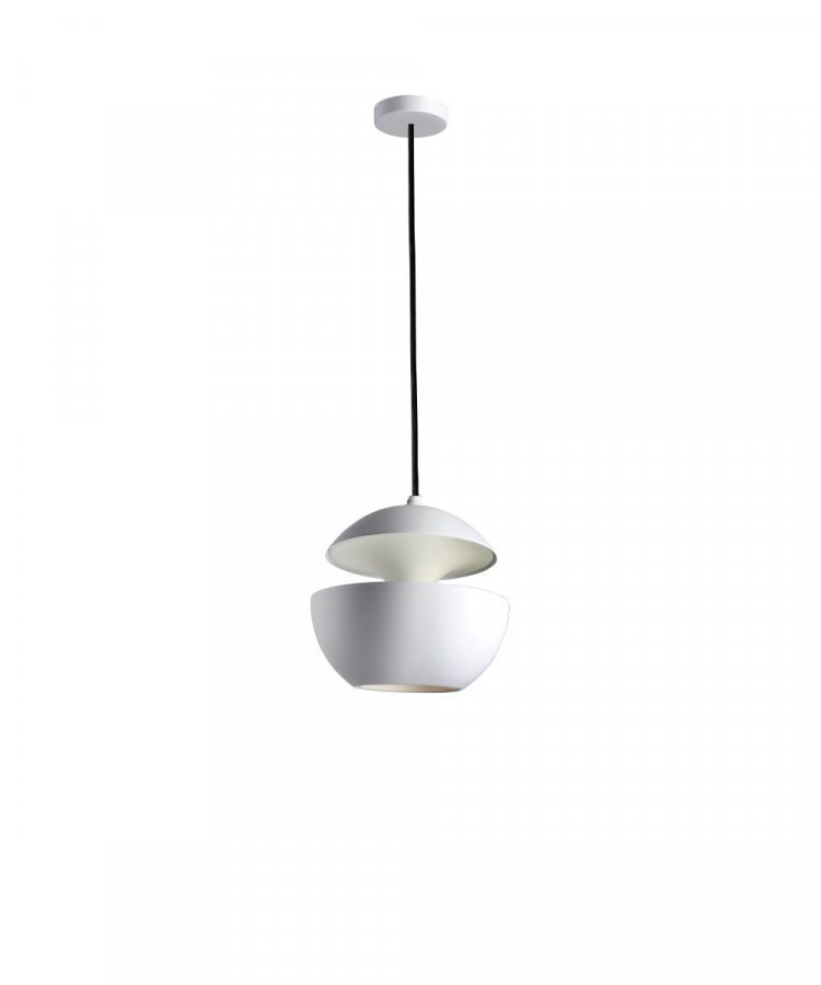 Design: Bertrand Balas for DCW. Konsepti: Here Comes The Sun Ø175 on Bertrand Balasin vuonna 1970 suunnittelema valaisin. Balas syntyi Toulousessa vuonna 1935 ja valaisin sai inspiraationsa Garonnen auringonlaskusta. Ensisilmäyksellä valaisin näyttää klassiselta maapallon muotoiselta riippuvalaisimelta, mutta kun valot syttyvät, aurinko alkaa loistamaan ja valaisimen nimi käy täysin järkeen – Here Comes The Sun luo taianomaisen valon säteilyn. Here Comes The Sun on saatavilla neljässä eri koossa mustana ja valkoisena. Molemmissa väreissä on joko valkoinen tai kuparinen sisäpinta.