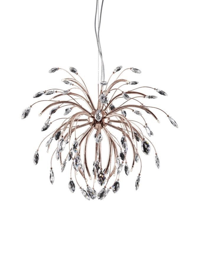 Erittäin näyttävä Copenhagen-riippuvalaisin loistaa kirkkaasti suuressakin tilassa upeiden kristalliensa ansiosta. Valaisimen kristallit taittavat kauniisti valoa ja moderni muotoilu mahdollistaa Copenhagen-valaisimen yhdistämisen monentyyppiseen sisustukseen. Materiaali on metallia ja kristallia. Kanta G4 x 25, enintään 20 W. Johdon pituus on 3 metriä.